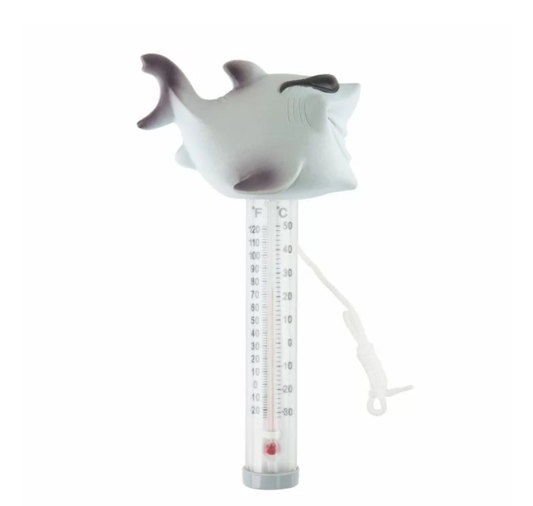 Спиртовий плаваючий термометр для басейну Kokido K725DIS/6P Акула. Показує температуру води в градусах Цельсія та Фаренгейта. Виготовлений з нешкідливого, міцного ливарного пластику. Не містить скла, ртуті або гострих частин. Оснащений шнурком для кріплення до стіни басейну.